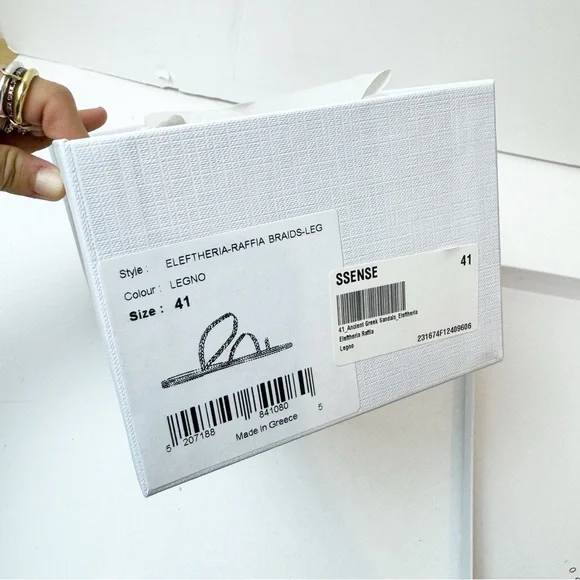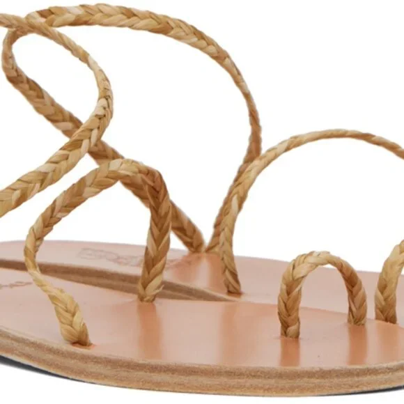 ANCIENT GREEK SANDALS | Beige Eleftheria Sandals in Legno NEWHandcrafted braided raffia sandals in beige. · Single toe strap · Fixed strap at vamp and ankle · Logo-embossed leather footbed · Leather sole with rubber injection Supplier color: LegnoSoleLeather With Rubber InjectionMaterialBraided RaffiaFootbedLogo-Embossed LeatherStyleEleftheria SandalsToe StrapSingleStrapFixed Strap At Vamp And AnkleBrandANCIENT GREEK SANDALSColorLegnoNatural brown leather Eleftheria sandals from Ancient Greek Sandals featuring an open toe, interwoven braided raffia straps and a flat sole.Neutral, minimalist. Leather.Size 41.Stock photos are for reference only. Feel free to make me an offer! Bundle and save. Be sure to follow along on Instagram @TheBohoRockerCondition: Brand new in box.