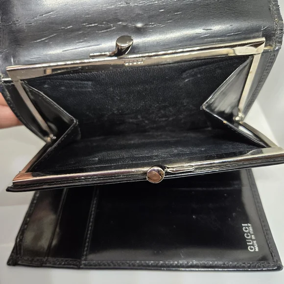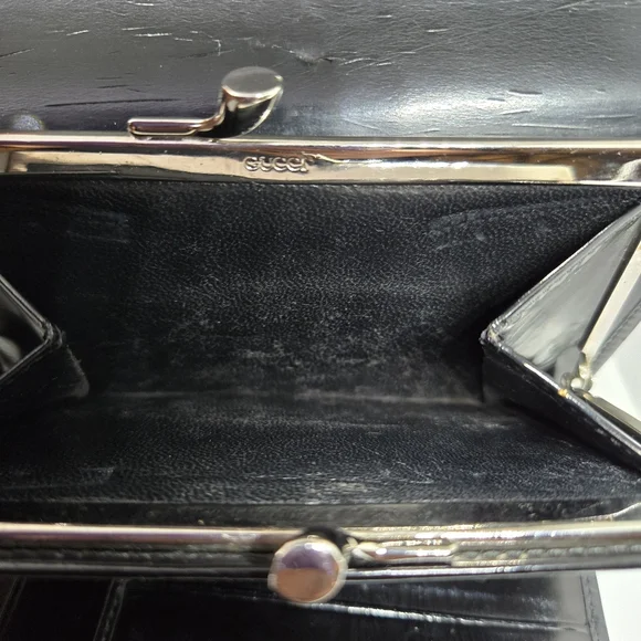 Gucci Patent Leather wallet5 card slotscoin compartment with snap closure Bill compartment some signs of wear,crackingSee pictures