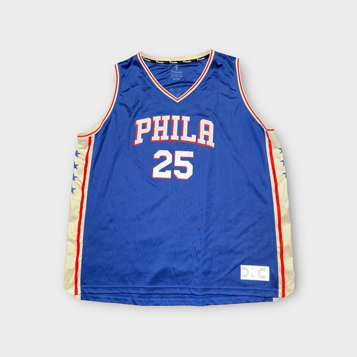 The product is an officially licensed Philadelphia 76ers NBA basketball jersey featuring #25 Ben Simmons, designed for young fans of the team. Made by Fanatics, this jersey is perfect for young boys who want to show their support for the Philadelphia 76ers during the regular NBA season. This jersey is a great addition to any young basketball enthusiast's collection.