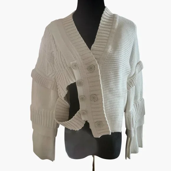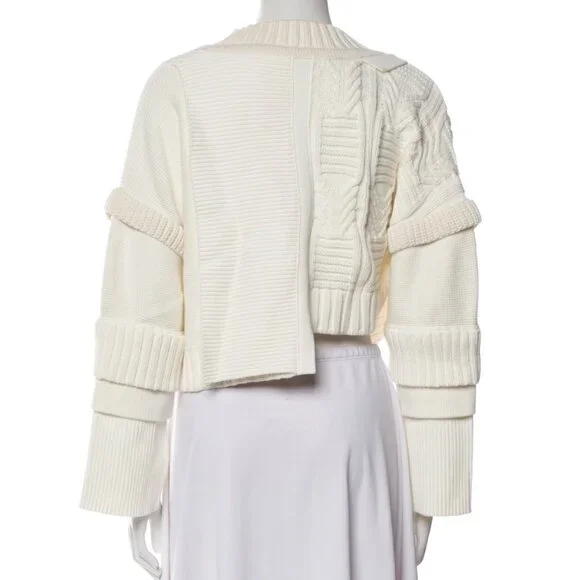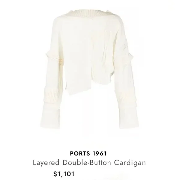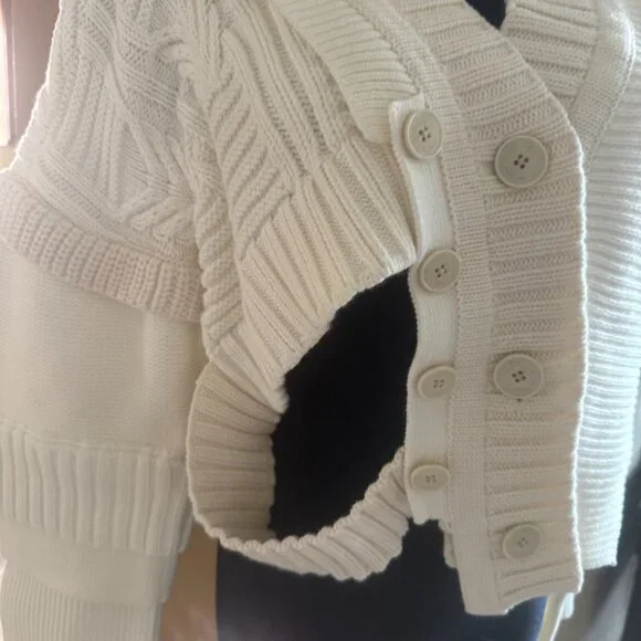 Ports 1961 Cropped Cutout Runway SweaterWhiteCutout AccentLong Sleeve with V-NeckButton Closure at FrontFabric: 100% CottonCan fit size S for more loose option but tag says M that fits as well.