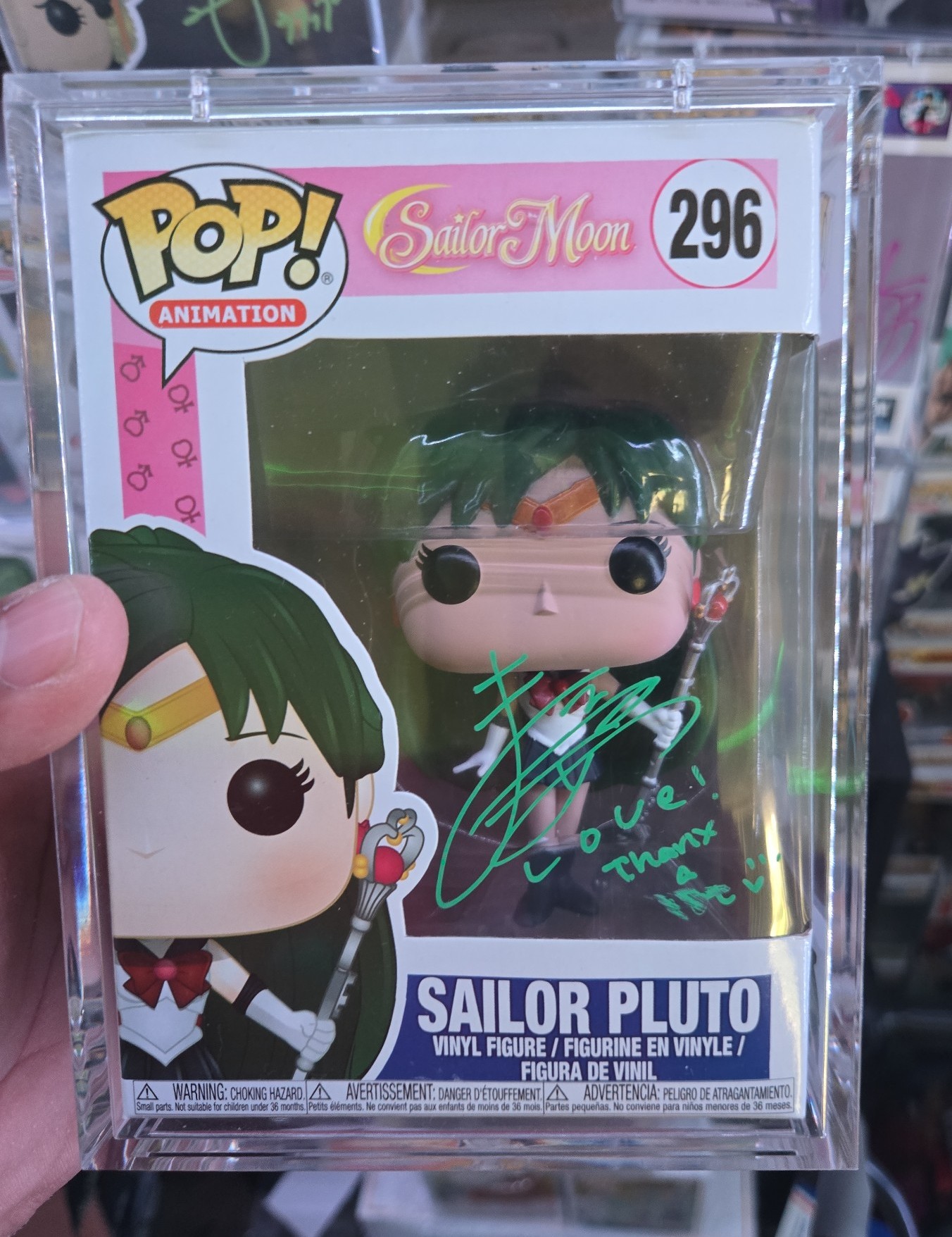 Sailor Pluto Funko Pop JVA Signed (Ai Maeda). Box is Mint (See photos to judge condition for yourself). Signed by Sailor Pluto's new voice actor Ai Maeda at Kawaii Kon in March 2024 (very rare, not many people got these signed). I think she might've smudged where it says "a lot" by accident, but the signature itself is fine. Funko is newly certified with a letter of authenticity by JSA (See last two photos). Condition of the item is the same as the first set of photos, but if you'd like updated photos, feel free to message me. Item will come with armor and the letter of authenticity. If you have any questions or concerns, feel free to message me. Thanks for browsing!