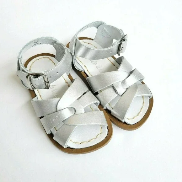 Brand new from Nordstrom with no flaws. No tags or box. There may be some sticker residue on bottoms. I have multiples and various sizes. If you need a twin set or different size, send me a message! This listing is for a size 5 (baby/toddler). Smoke, pet, and fragrance free shop. Bundle to save on shipping! BIN022308S4 #saltwater #silver #hoy #sandals #new #spring #summer